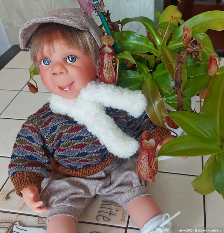 Мне не нравится, что производитель дал ему тело младенца, ведь это же очевидно взрослое существо, поэтому я попыталась скрыть младенческие складки одеждой — сшила ему штаны, сапожки, в процессе вязки свитер с длинным рукавом. А ещё у него имеются гендерные признаки, и это оказалось ну очень неудобно при пошиве штанов. Зато он чудесно пахнет, как и большинство испанских кукол.
