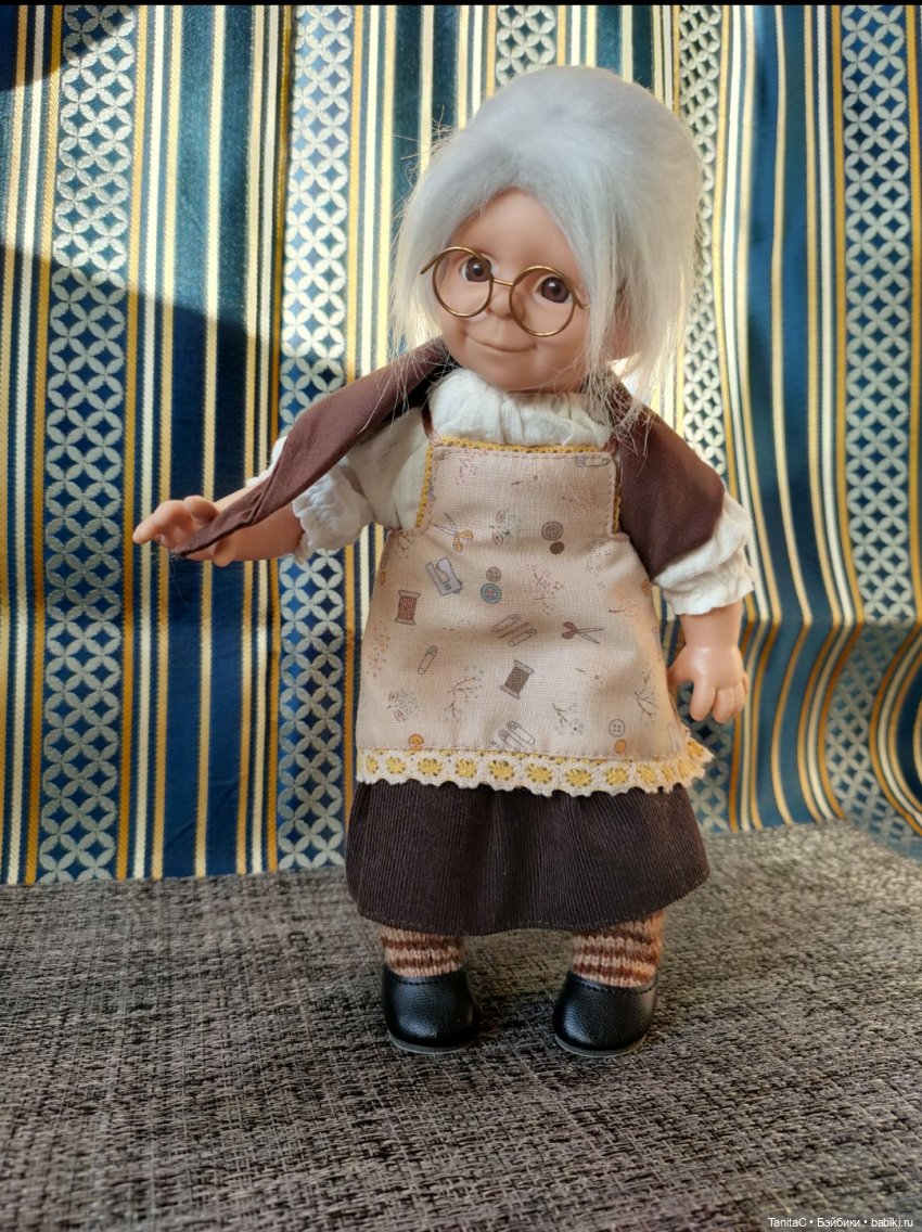 Посмотрите на этот взгляд через очки — она точно знает, кто из ребят спрятал шоколадку и кто разбросал винтики в мастерской. Настоящая хранительница кукольного покоя! У неё такой уютный образ, что сразу хочется попросить у неё чаю с вареньем.