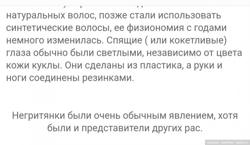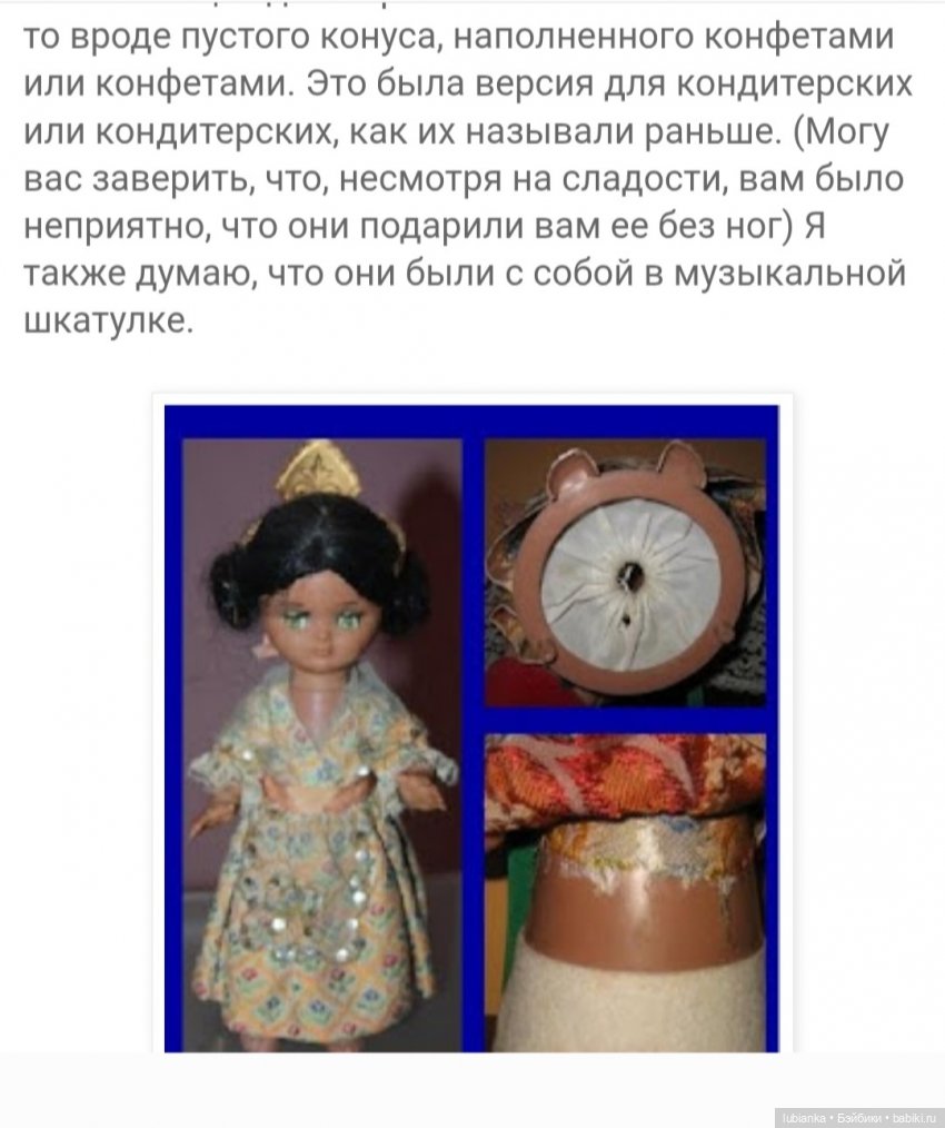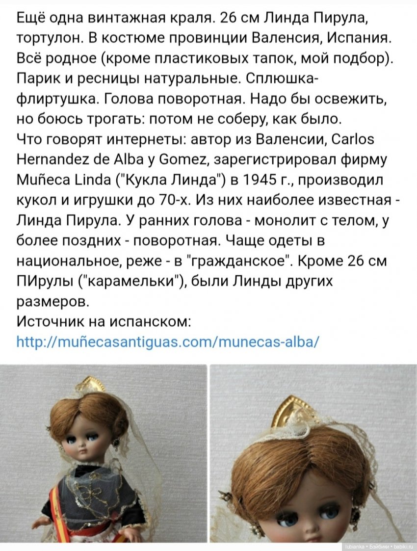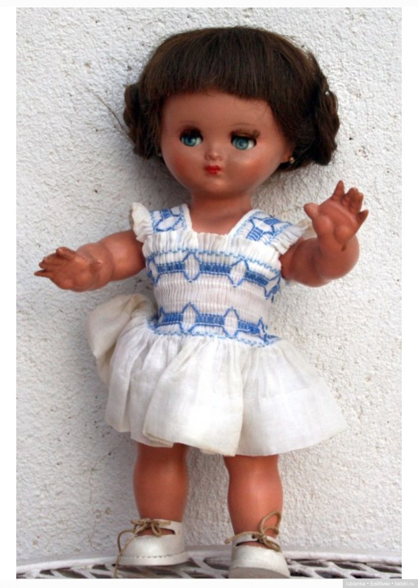 Судя по всему, раз у неё статичная головушка и волосы натуральные, она из 50х гг, как я и предполагала