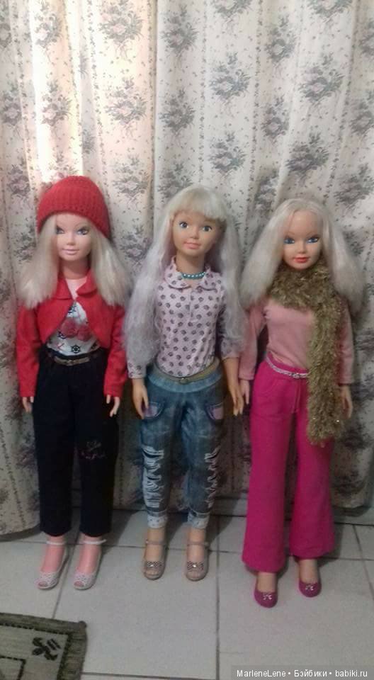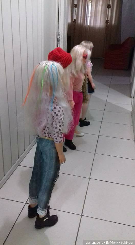 Добрый вечер! Хочу вас познакомить со своими «малышками Jesmar» — не по размеру, как увидите, а по возрасту. Таких у меня только три, надеюсь, что они вам также понравятся, как и старшее поколение. По-моему, они очень трогательные и очаровательные. В прошлый раз я показала фотографию одной из них, еще в «помоечном» состоянии, а сейчас повторю и ее, и покажу, какой она стала в своем новом семействе. Она еще до сих пор не привыкла к своему новому облику и пыжится от гордости и удовольствия. Когда я забирала ее на встрече с продавцом, мне вытащили ее из большого мешка прямо за волосы… А тепрь она любима и счастлива, все это читается на ее мордашке, правда? Две другие — уже давние обитательницы, старшие девчонки относятся к ним, как к младшим сестричкам, что тоже видно на одной из фотграфий. А еще я добавляю фотографии той куклы, которую я очень-очень давно ищу, пока безуспешно (брюнетка).