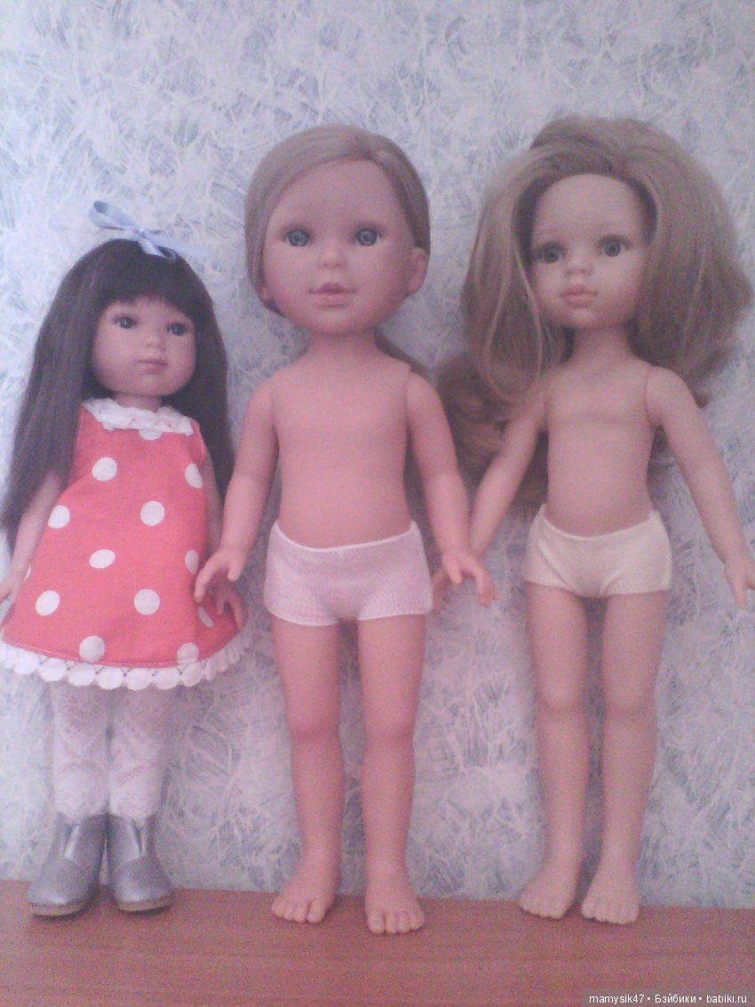 Начну с того, что я очень люблю такого размера кукол. В основном у меня живут девочки Паола Рейна, Ани, Селии от Asi, Малышки от Кармен Гонсалез, Antonio Juan и другие. Просматривая ваши топики, неожиданно для себя открыла этих Карлотт. В интернет- магазинах фото не очень, совершенно не вдохновляли на покупку. Сначала я сомневалась, кого выбрать, брюнетку или блондинку, голышек или в одежде, и решилась на двух голышек. Оказалось, правильно, так как вдвоем они смотрятся интереснее и, наряды наших дорогих мастериц в сто раз красивее и ярче скучных фабричных. Спасибо им большое!