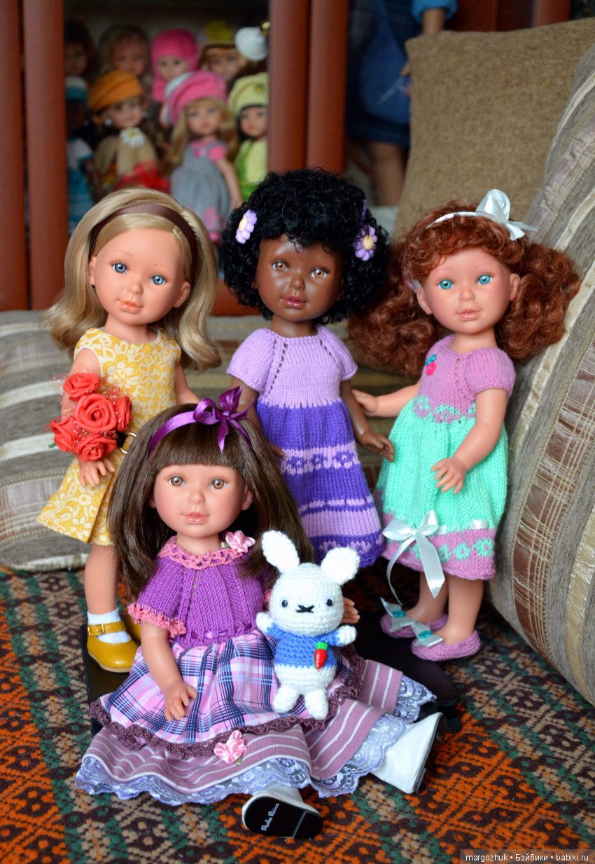 До покупки куколок этой фирмы у нас дома было всего 6 куколок (5 Paola Reina и 1 Berjuan). Но это для меня совсем немного. А вот для моего мужа — очень даже много! Он все время негативно высказывается о пополнении моей коллекции, говорит, что все это бессмысленно и пустая трата времени и денег. Что уж тут поделать. Человек он у меня хороший, но, как и многие мужья, просто понять не может зачем мне вязать, фотографировать и писать о куклах. Одни расходы, доходов никаких. И, к сожалению, на работу я еще не вышла из декрета, поэтому мириться с возмущением мужа приходится.