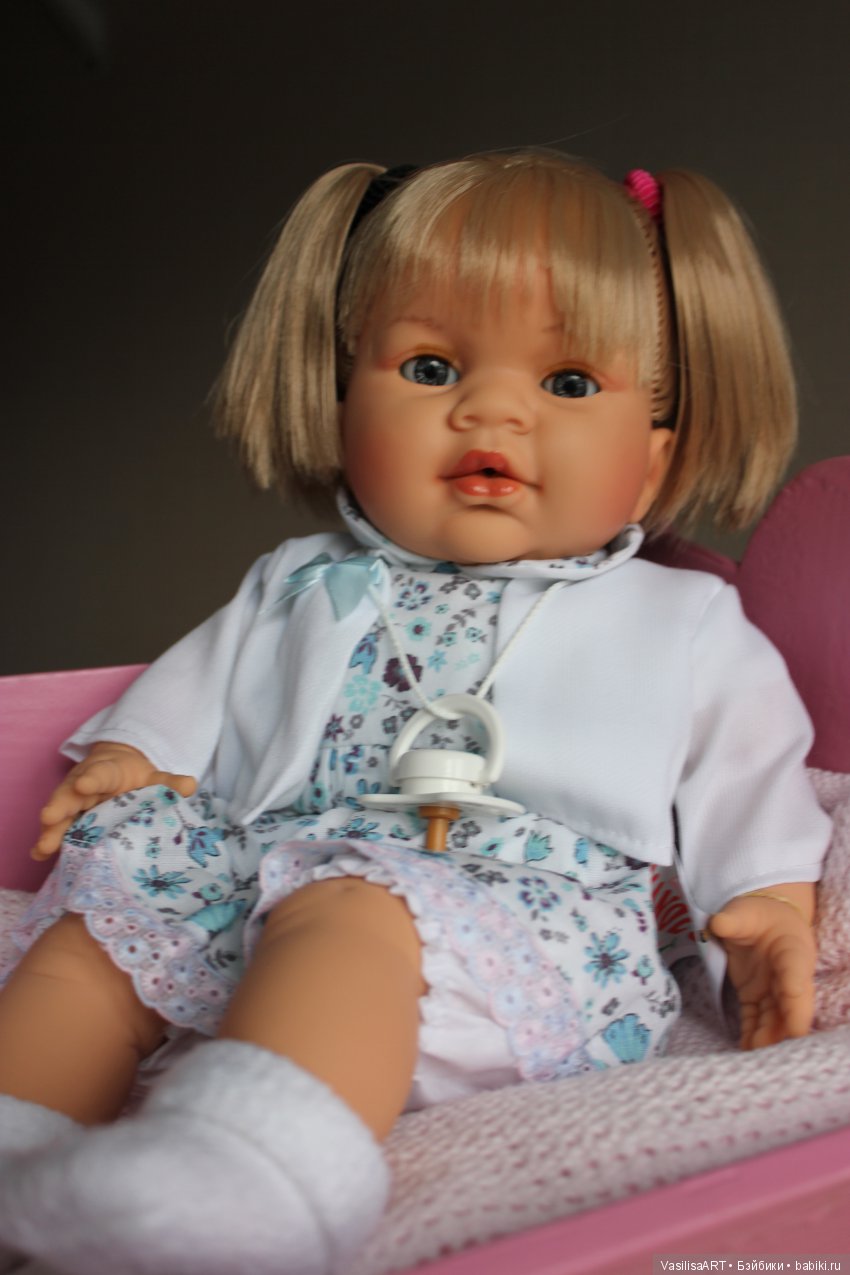 Добрый день девочки! Помогите пожалуйста с выбором пупса для дочки. Я поняла, что наши с ней вкусы разошлись. Мои лимишки ее не интересуют и испанцы, тихо сидящие на полочке тоже. Ей нужен пупс с закрывающимися глазками, которого можно кормить, укладывать спать и если он еще будет плакать без соски, то думаю радости не будет предела. В общем ребенку нужны другие куклы… не такие как нам… наконец то мама это поняла. Конечно больше всего под эти параметры подходят беби боны и анабели, но так они мне не нравятся на лицо… хочется чтобы на личико были более настоящие. Проштудировав бейбики… вот что нашла Missy kissy… правда не знаю пока где ее брать и чтобы еще мягкотелая была. Девочки, может вы мне еще какие вариантики подскажите? Вы тут так много знаете про куклы…