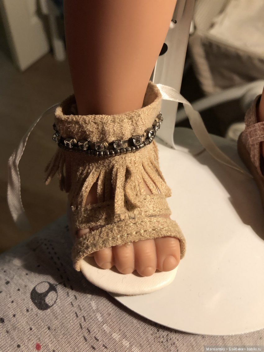 Возможно у Запф какие-то другие измерения у ноги больше, ширина или подъем, поэтому плохо лезет в обувь от Готц или АГ, надо действительно попробовать модели от пупсов, типа Беби Борна, ну или у Готц смотреть самую широкую обувь. А эти сандали, кстати, очень узкие, в них и Готц нога туго заходит.