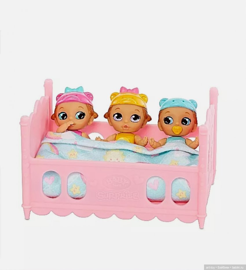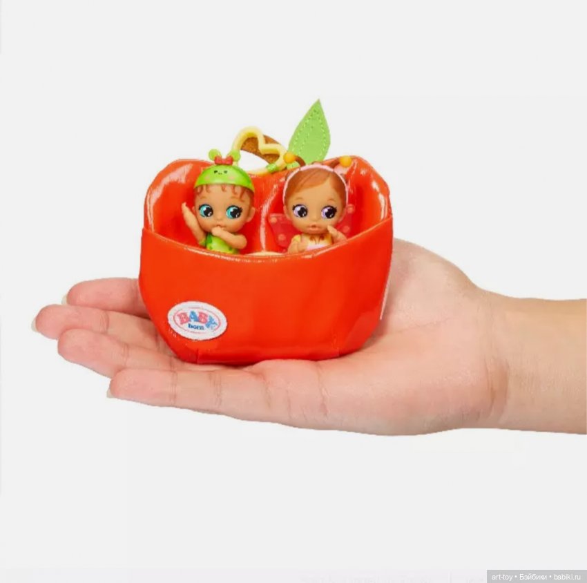 Третья крошка — baby born surprise. 11 cm. Мультяшная. Хоть и оригинал, качество уступает первым двум куколкам. Тело — твердый пластик. Голова винил. На спинке — клеймо. Глаза нарисованные. Невооружённым глазом видно влияние куколок ЛОЛ. Для сравнения прилагаю фото в компании с ЛОЛ.
