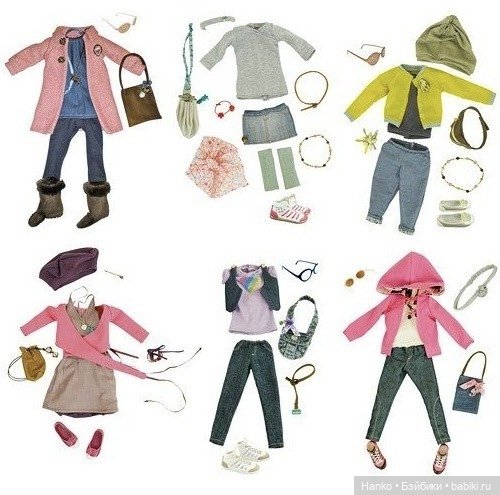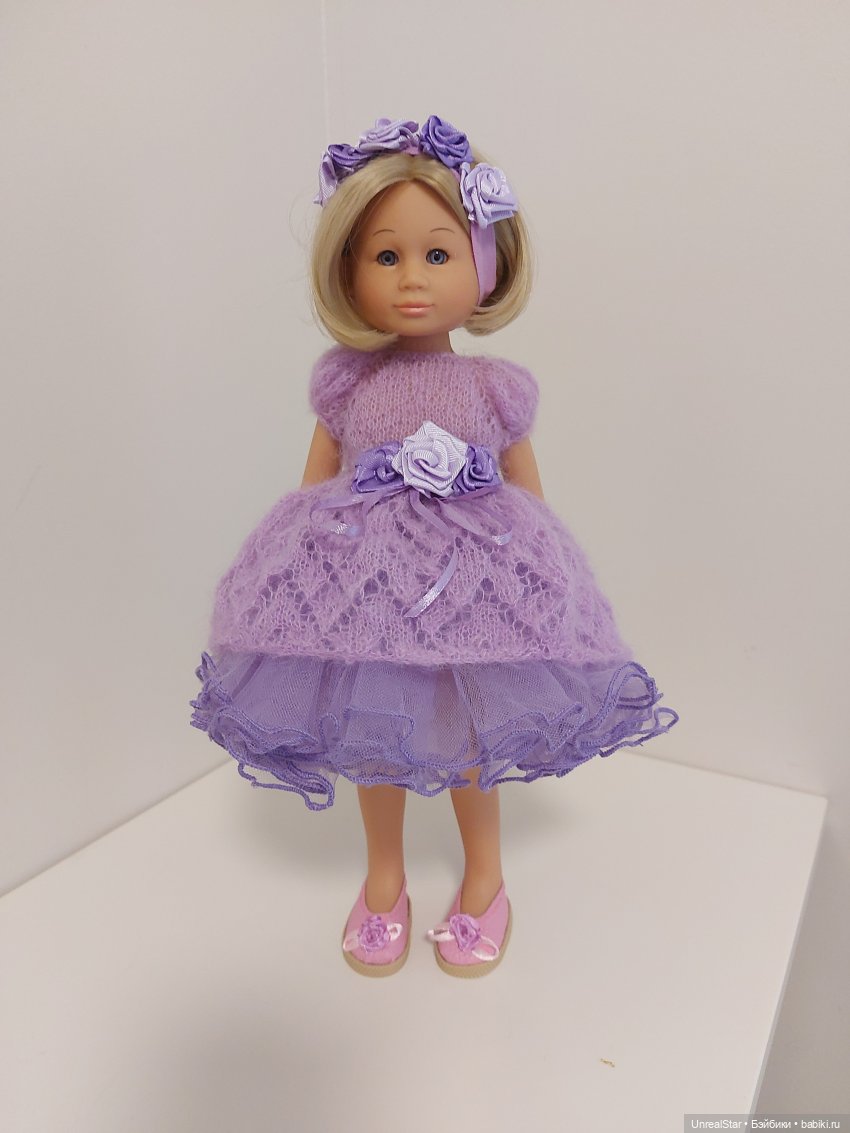 Кукла появилась у меня без одежды, подстриженная маленьким парикмахером. И хоть волосы обкромсаны довольно неровно, я не хочу пока вести девочку к парикмахеру. Эта небрежность в стрижке нравится мне даже больше её родных длинных волос. Сначала я сшила ей платье и связала сапожки. В этом наряде кукла жила, пока здесь, на сайте, не были куплены четыре наряда, которые мы и хотим показать вам. Несколько фото, где куклы в коробках и несколько промофото взяты из интернета.