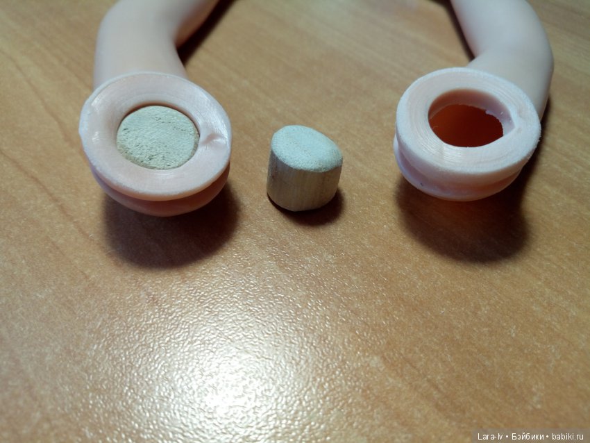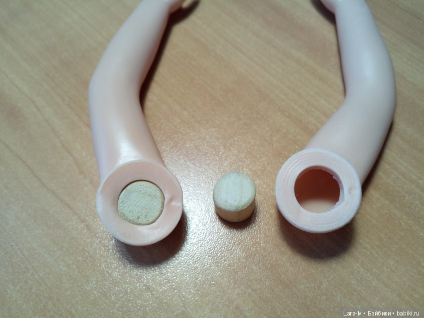 Чурочки зашкурены и подогнаны под размер рук и ножек, чтобы не выпирали острые углы и не давили на плечико и бедро. Таким образом у них появилась опора и вся конструкция стала более надежной.