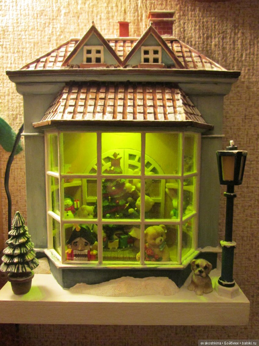 Как-то в конце осени мы зашли в магазин подарков и увидели там очень миленький Новогодний (или Рождественский) домик-витринку, сделанный из материала, похожего на керамику.