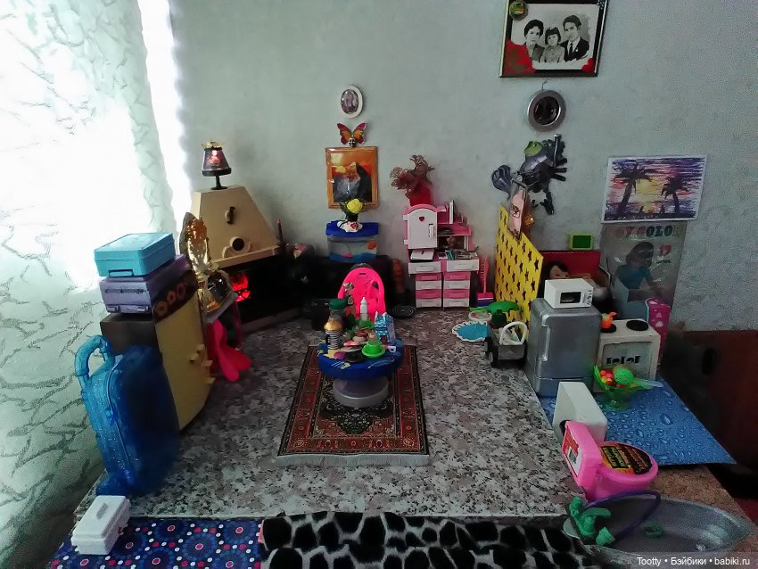 Интерьер формата Барби (для понимания). Постаралась снять каждый уголок поэтому фоток много. Пока в домике пусто. Все уехали на мэйк. Грустит одна Каринка. Хотя у нее много игрушек)) Она коллекционер кукол и игрушек.