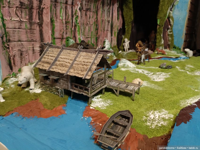 Сделала я её из переплётного картона, для пола использовала старый фотофон, для обоев — скрапбумагу.