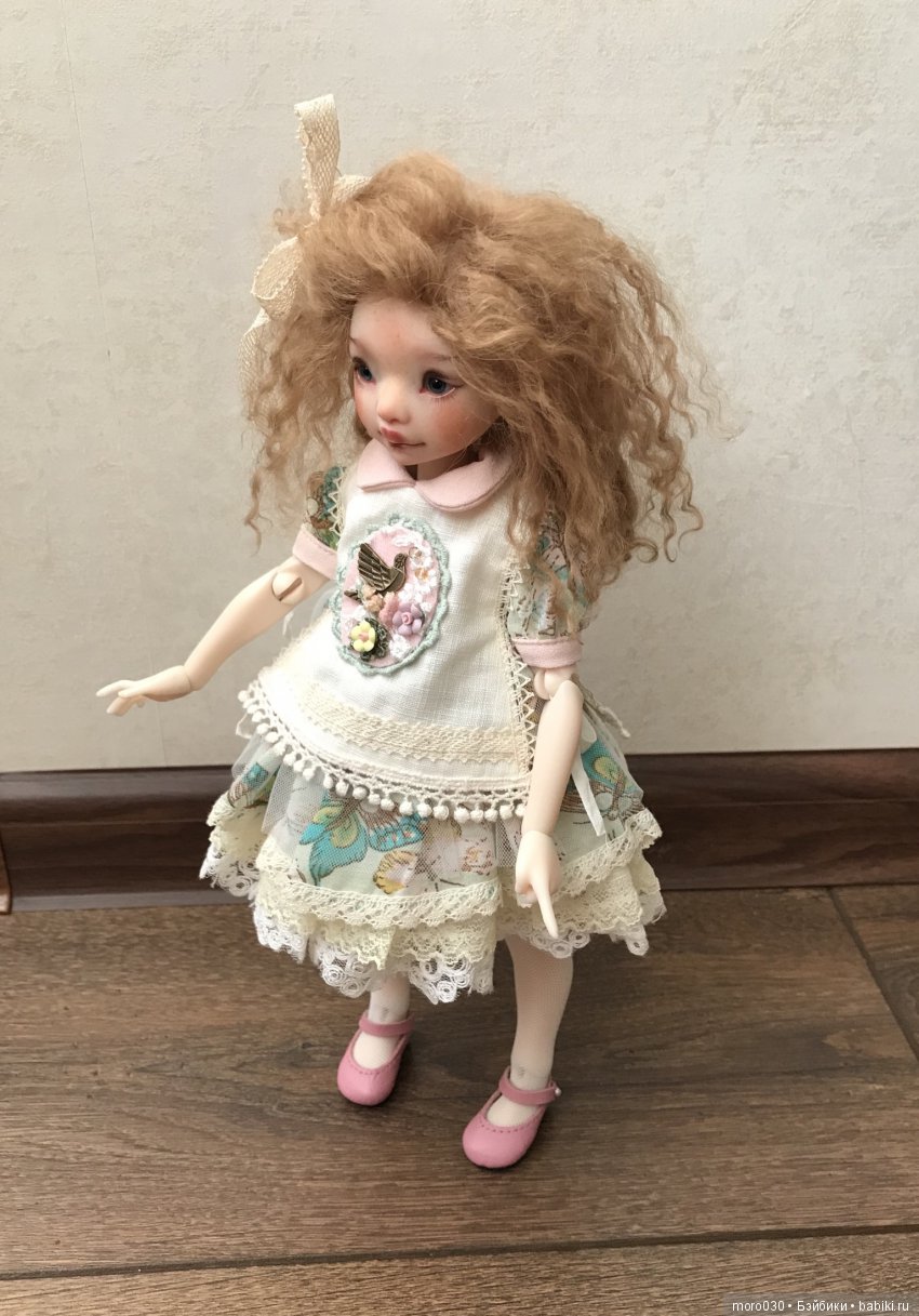 Громоздкий наверно потому что ткань хлопок американский, а для маленьких кукол, он всё таки толстоват. Если много накручего в аутфите, то он становится как бы сказать?.. Дыбом немного стоит. Так? Но всё равно смотрится отлично!