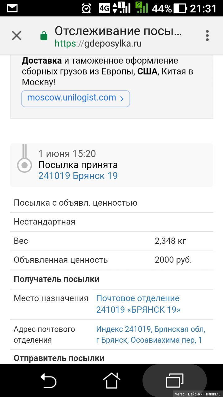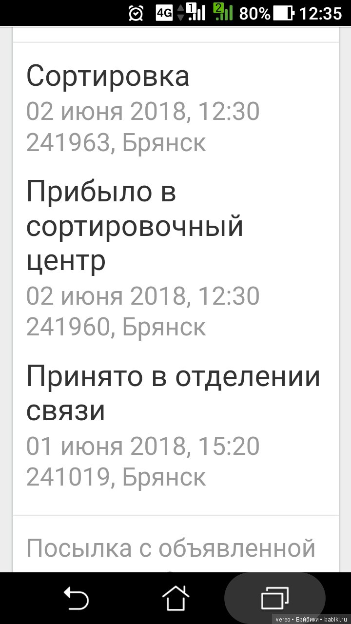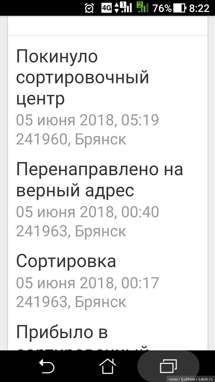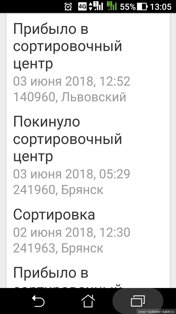 И якобы информация в отслеживании на вчерашний вечер может быть неверная, что за сутки она не может с одной перевалочной базы прийти на другую в Брянск. Остается ждать
