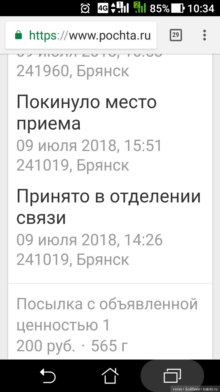 ( посылка ещё находилась на почте)