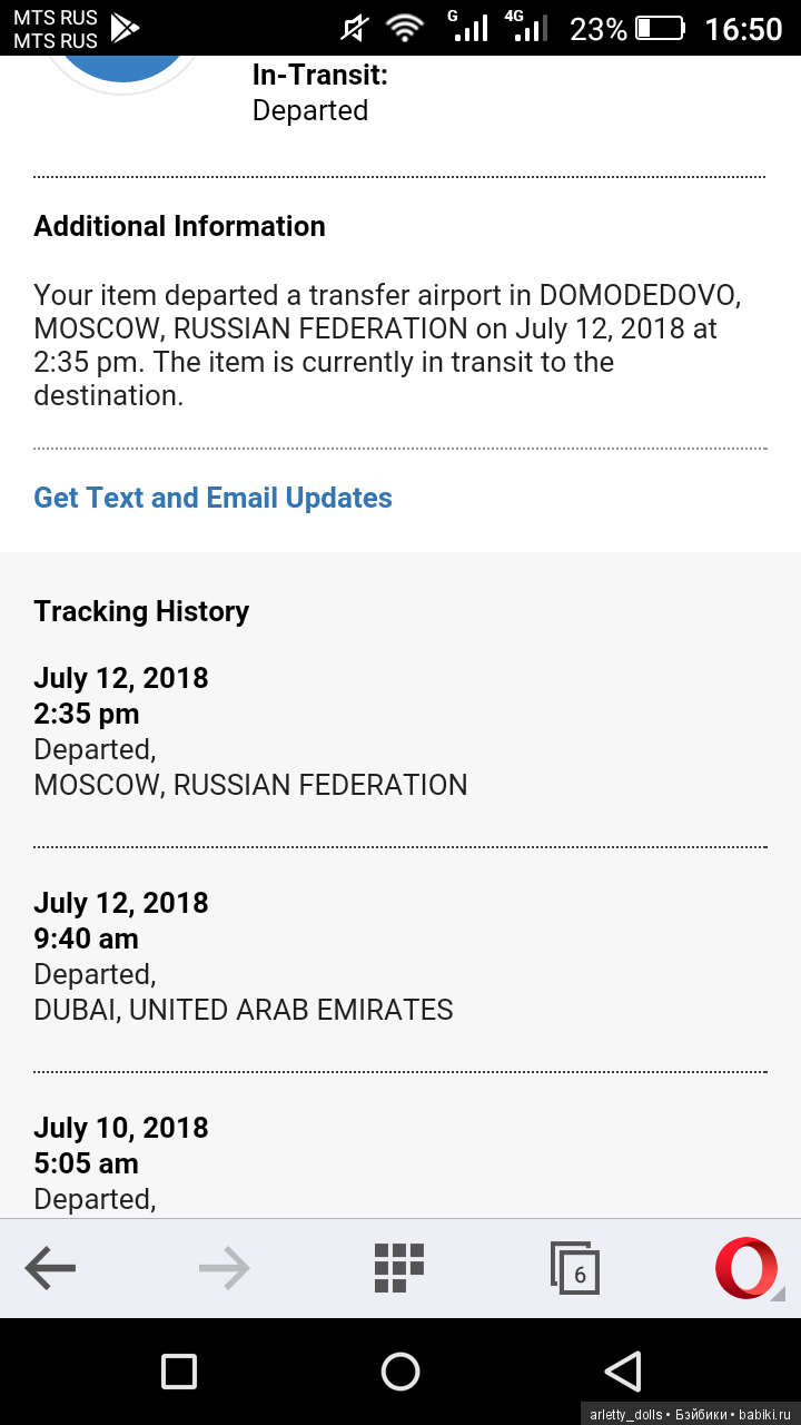 Вот как двигалась моя посылка. После Dubai была в Москве: