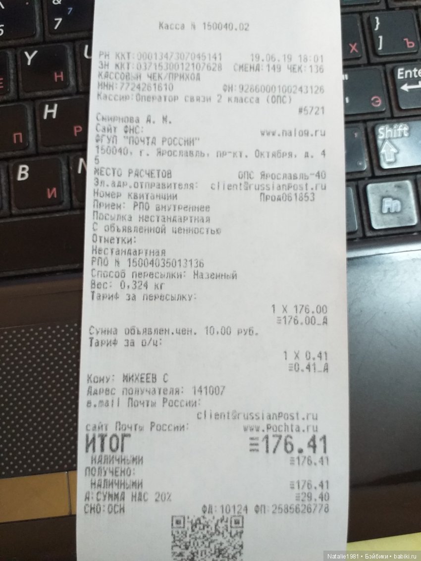 Вот скриншот с сайта почты, где указан тариф на отправку, и фото чека, уже из другого почтового отделения. Надеюсь, мои жалобы возымеют эффект и потреплют мое ОПС как Тузик тряпку…