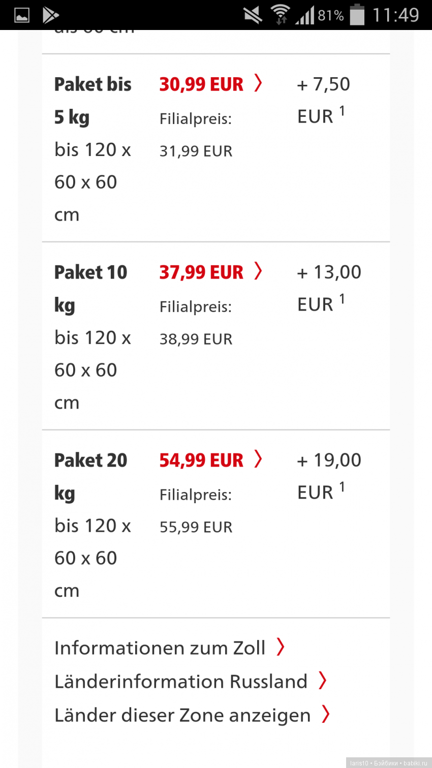 Из Германии, например, самая дешевая со страховкой- 31€.