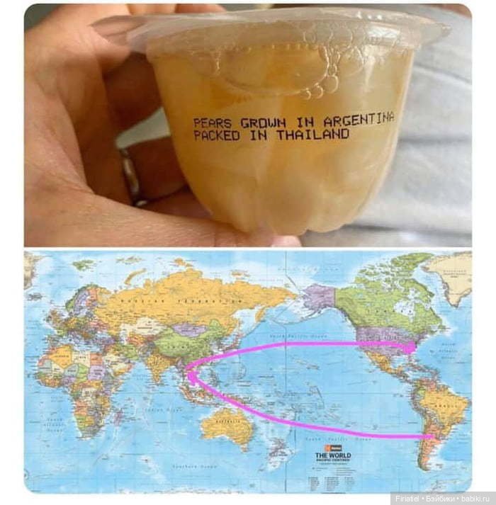 Просто современная логистика: груши выращены в Аргентине, упакованы в Тайланде, проданы в США.