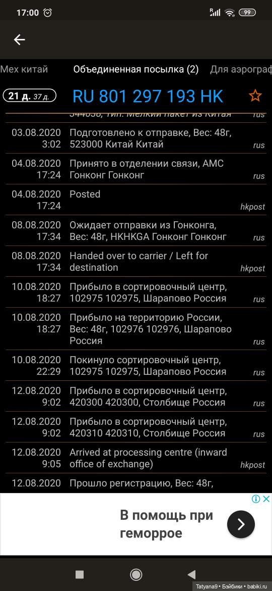 Я прошу в ответ уточнить с чего бы вдруг из Гонконга нет пересылки, когда я за последние месяцы без проблем получила уже штук 7 посылок из Китая, Малазии и Гонконга в том числе.