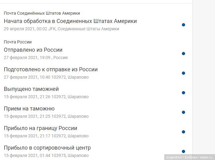 И вот сегодня утром телефон пиликнул об изменении статуса. Я чуть не разревелась за рулём от облегчения. Но вот интересно, вылетела 27 февраля, приземлилась 29 апреля — два месяца в воздухе?)))