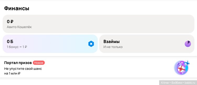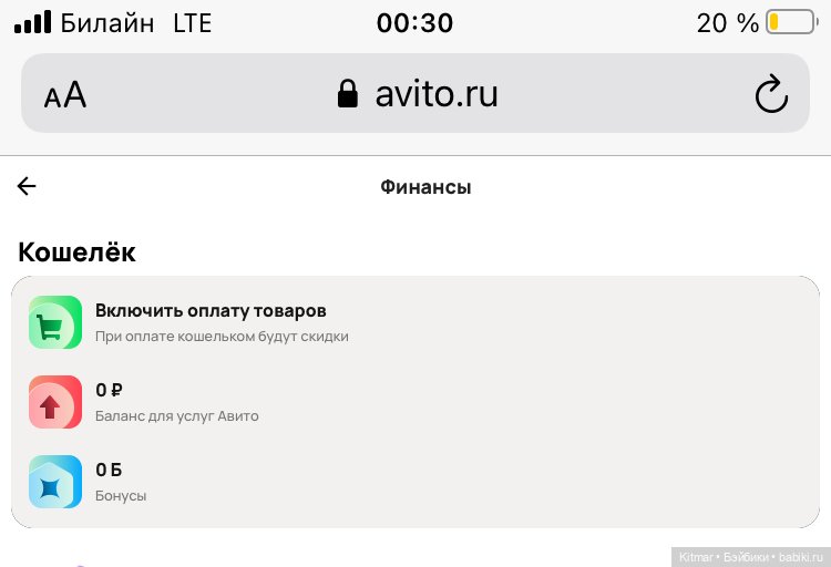 А это — если зайти в раздел «Авито Кошелёк»: