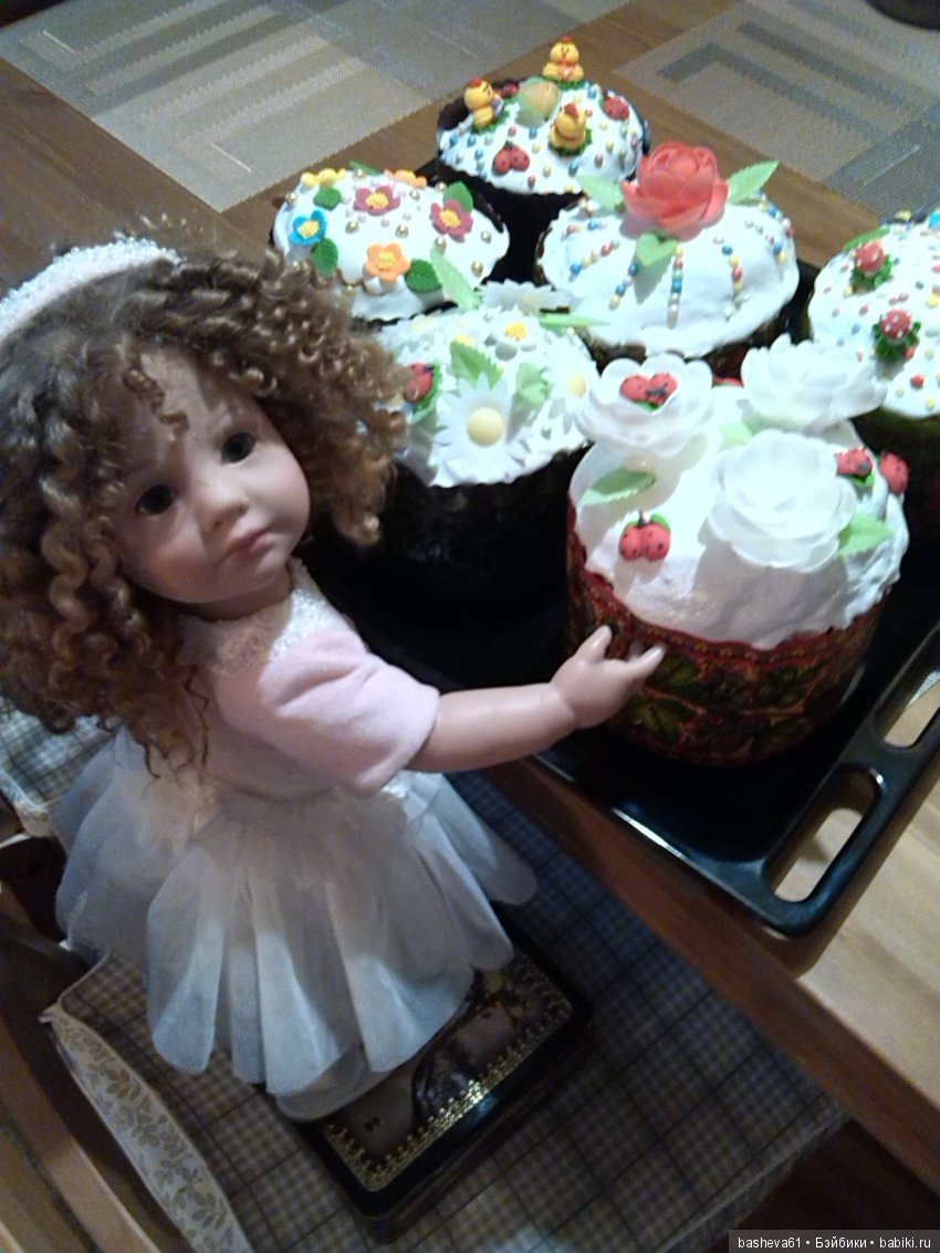Здравствуйте все. Сегодня, мы вместе с мамой провели день в делах. Мы сделали куличи, покрасили яйца и сделали паску. Маша с энтузиазмом сидела рядом, и вдыхала ароматы. А затем я решила, что надо подумать над оформлением для кукольного стола. Осталась цветная глина, ну и я чуть полепила. Надеюсь понравиться! Мамины куличи тоже.