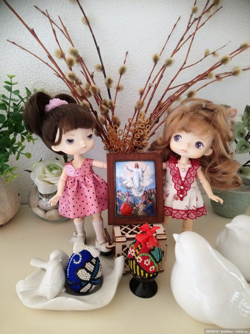 В последние несколько лет Пасха — один из моих любимых праздников. Люблю к нему готовиться, печь куличи, украшать яйца, и конечно, традиционная фотосессия с моими кукложителями.