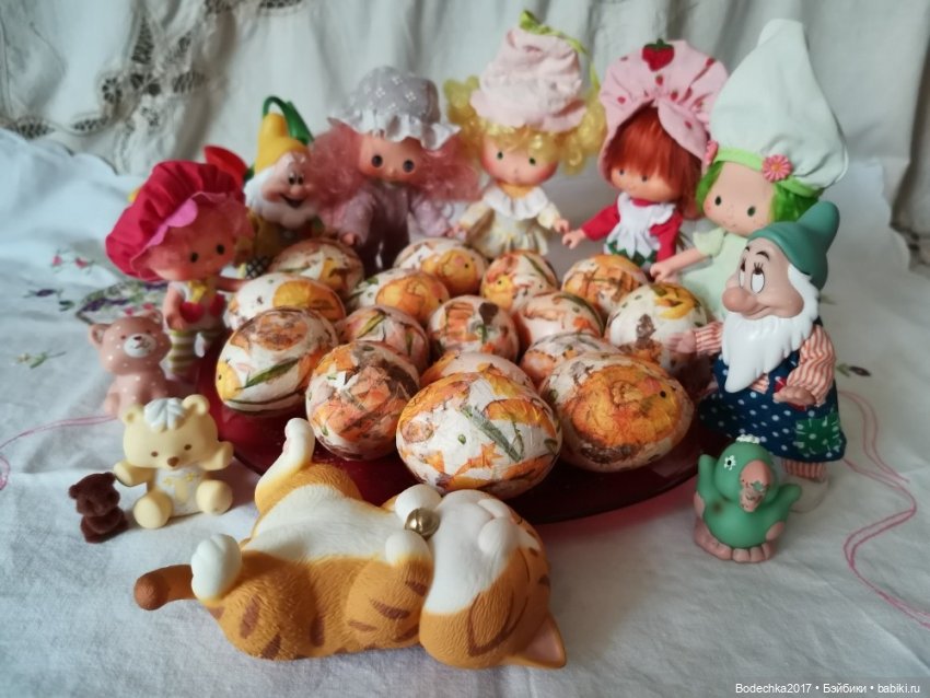 Я в детстве любила разноцветные крашеные яйца, термоэтикетки, а сейчас наоборот, больше нравятся натуральные краски:)