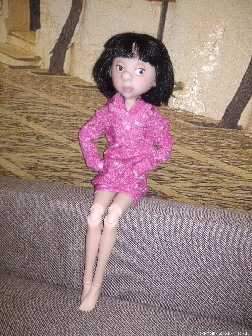Приветствую всех односайтников в этот последний день лета. Я раньше писала несколько топиков о Эдне. Очень люблю эту куклу, но с первой пришлось расстаться из-за финансовых проблем. Но мистика в том, что продав ее, я даже не смогла воспользоваться деньгами, так как мошенники сняли деньги с моей карты. В банке я ничего доказать не смогла, осталась ни с чем. Пришлось продать ещё несколько кукол. Но продав именно Эдну, я затосковала. Все просматривала шопик и витрины ДМ в надежде купить милую сердцу куклу. И вдруг она появляется в шопике Candy74 и цена ну просто дешевле только даром. И вот кукла приехала. Такая родная, моя. Естественно, сразу захотелось загибридить. Как назло, в ДМ пышки были без скидок, дороговато, а в моих запасах было только расшатанное тельце, которое мне не нравится. И вот я наткнулась на Али на шарнирное тело, аж 30 см в длину. То есть полный рост куклы получается 36 см. Рискнула заказать. Доставка супер быстрая и вот я достаю его из пакета. Реально непривычно большое тело. Сгибридила. И так мне понравился результат, что тут же нарядила в то, что было под рукой и решила показать вам. Правда, Китнисс немного в шоке, но ничего, привыкнет))