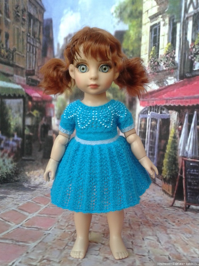 Жаль во весь рост фото нет. Я из тонкого мохера не вязала ещё куклам. Но так здорово смотрится! Надо купить моточек