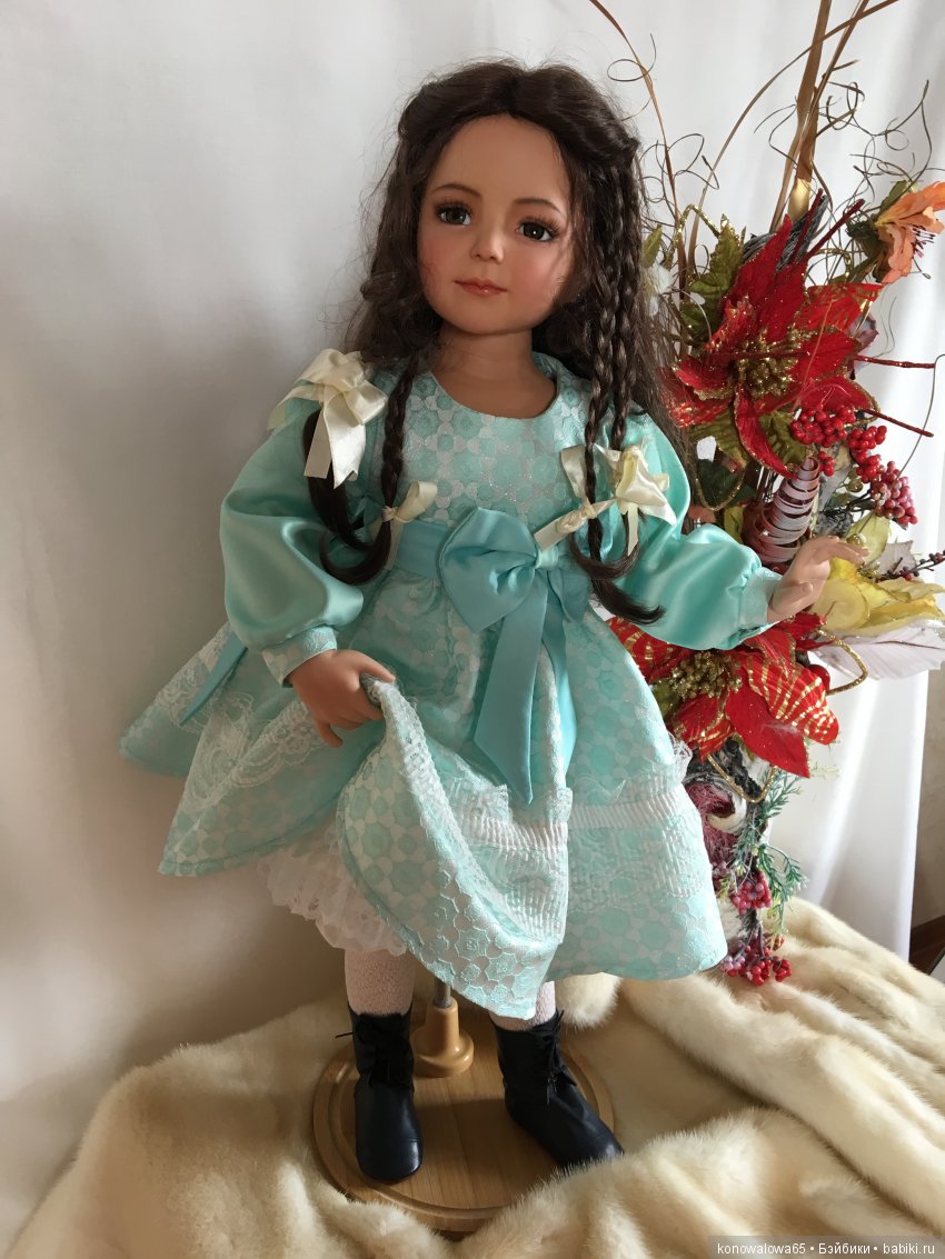 Девочка уникальная, красива до кончика ногтей, сделана в ед. Эк. Расписана с душой настоящей художницей, подпись художника на головушке, красивая лепка рук, глаза стекло, волос натуральный, и конечно же загадочная улыбка Джоконды! Диана Эффнер, фарфор, Рост 75 см, многослойный наряд выполнен мной. Приглашаю Вас полюбоваться красавицей Амбер!