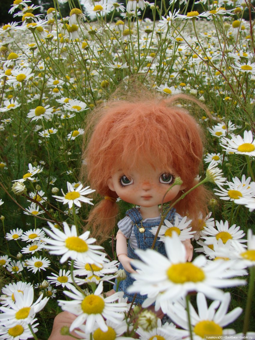 Вот сегодня взяла Баську с собой на работу, каждое утро, прохожу мимо огромного поля из ромашек. После работ сделала несколько фото.