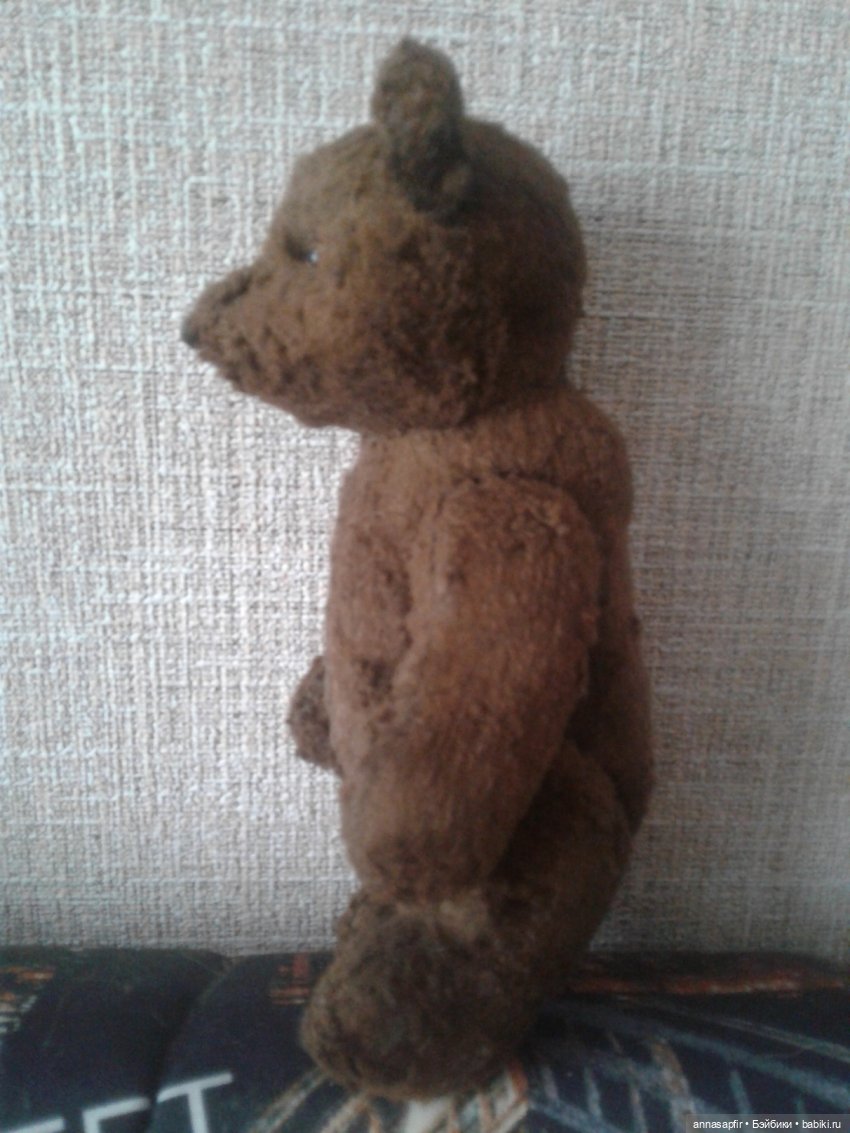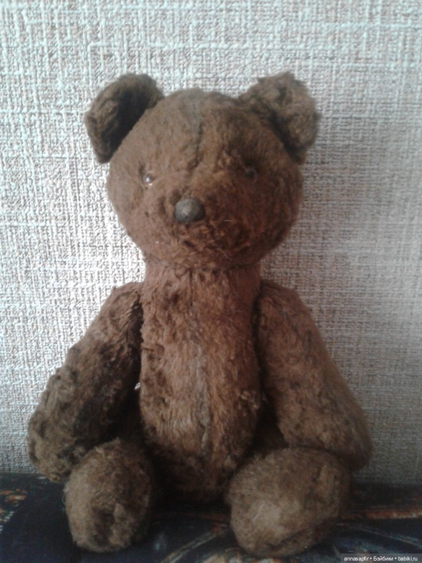 Познакомились мы с Лизой с очаровательным медведем. Удивительно, но он прошёл и продолжает идти весь жизненный путь своей хозяйки, горячо ею любимый и бережно хранимый… Ему уже 70 лет, он полинял, от вельветовой шёрстки осталась одна основа, напоминающая мешковину, но от этого он не стал хуже. Невероятно добрый, красивый и милый, ведь правда?