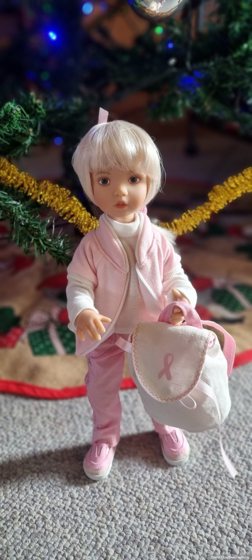 Это кукла «Walk for the Cure» от галереи Эштона Дрейка. Честно говоря, ее родной костюм я считаю не очень удачным — мне кажется, он ее как-то простит.