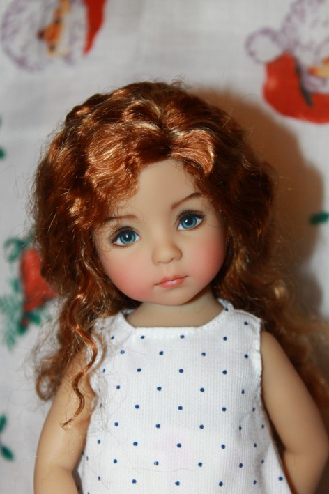 Моя самая первая девочка студии Эффнер по имени Аника приехала с темными волосами. Дианна хорошенько приклеила парик, менять его я ни в коем случае не планировала, так как не видела смысла улучшать то, что уже безупречно. Вот Аника в коробочке, румяная. Фото сделаны зимой, девушка с мороза :)