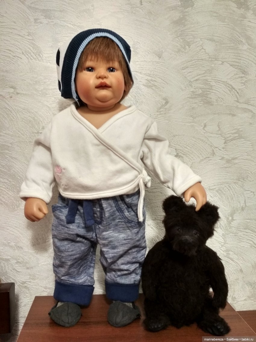 Два с половиной года с тех пор как я увлеклась куклами от Сьюзи Эймер. Два с половиной года назад ко мне приехал первый сюзик. Изучала я ассортимент от этого автора и увидела ЕГО!!! Картинка в каталоге с Корнелиусом вьелась в мой мозг и с тех самых пор я не оставляла надежду поселить его у себя. Два года я искала Корнелиуса. Но никто не предлогал и не продавал(. И вот случилось! На немецком сайте продавец выкладывает его в продажу, но условие-самовывоз! Три человека были подключены мною, один из них немец живущий в Германии, у которого я тоже покупала кукол. И вот одному из них повезло, продавец согласился отправить правда не скоро. Два месяца после моей оплаты я ждала его! И вот он дома. Корнелиус единственный, которого я достав из коробки не рассматривала, а прижала к себе и долго сидела с ним вот так, обняв (многие вероятно подумают, что я сошла с ума)))). Помылись, постирались и теперь пришло время любования!!! Состояние парня очень хорошее, пара точек на ноге, с которыми справится не получилось, но это ерунда. Он очень отличается от остальных сюзиков, он почти как студийный))). Люблю не могу!!! Вместе с ним во мне как буд-то случилось некое кукольное наполнение! Как буд-то и больше никто не нужен))).
