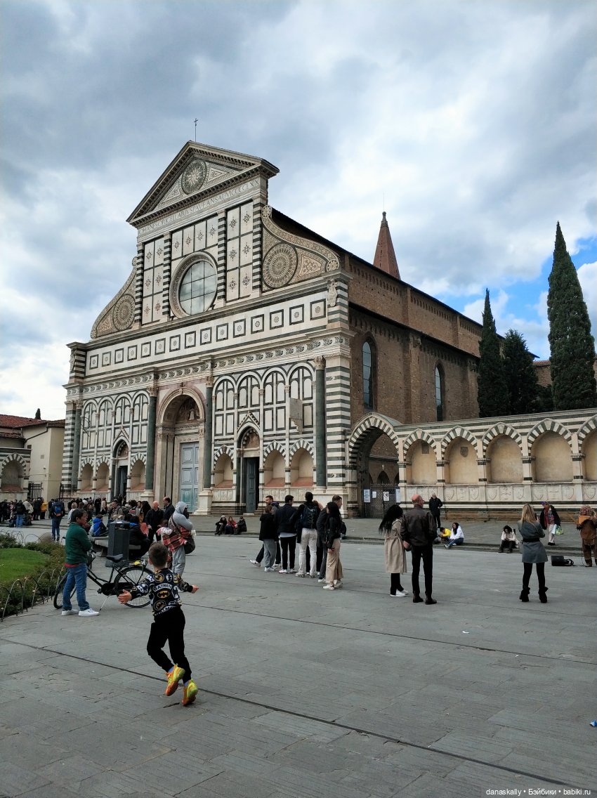 Церковь Санта Мария Новелла. Первая монастырская церковь во Флоренции. Братья Доминиканского ордена начали строить её в 1246 году. Разноцветным мрамором фасад был облицован в 1470 году.