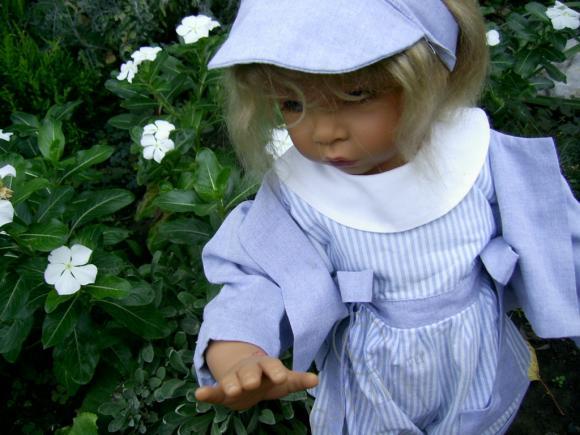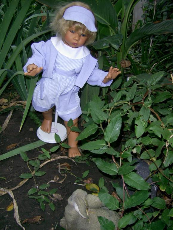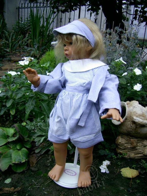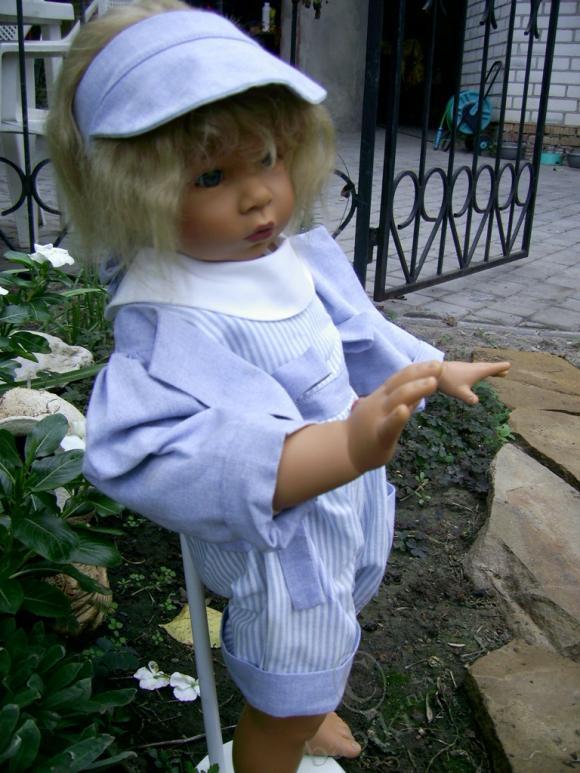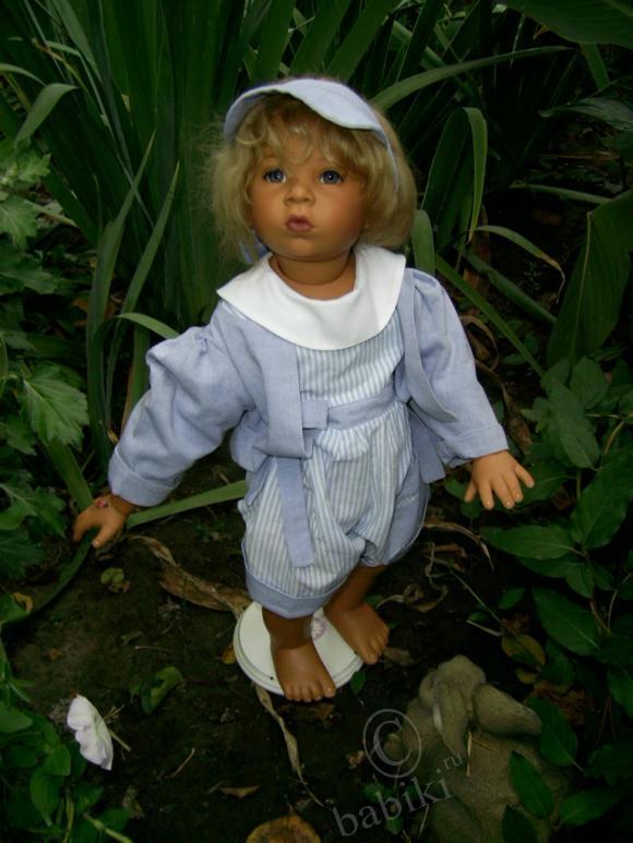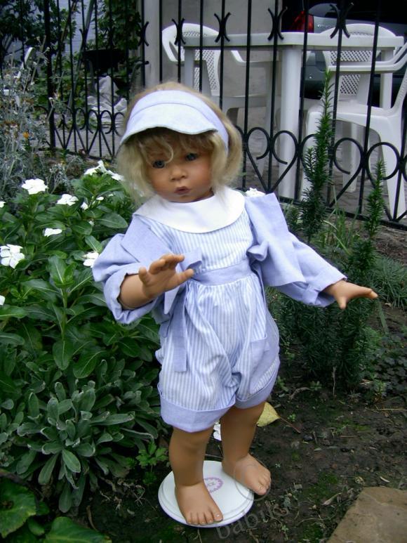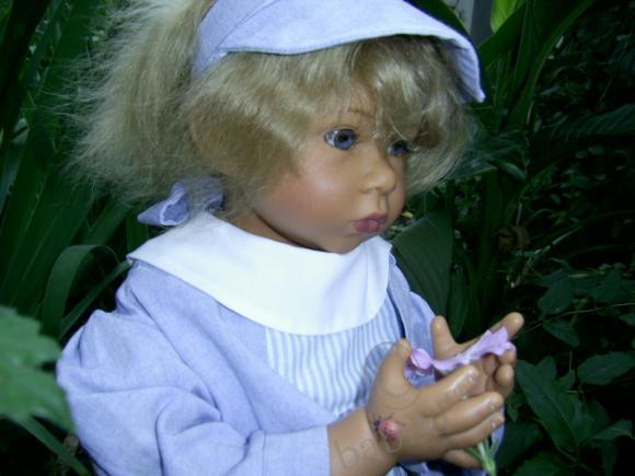 Свою девочку я увидела на американском ибей, продавались сразу три лота Линднер – три разных девчушки, все из довольно ранних коллекций для Гётц. Двух я упустила :( Вполне возможно, будь она, третья, чуть более ухоженной, причёсанной, в выглаженной одежде – не стала бы я за неё бороться, а тут так жалко стало: стоит кроха, волосы какой-то паклей висят вдоль личика, одежда сидит криво-косо, и мордашка явно не умыта…