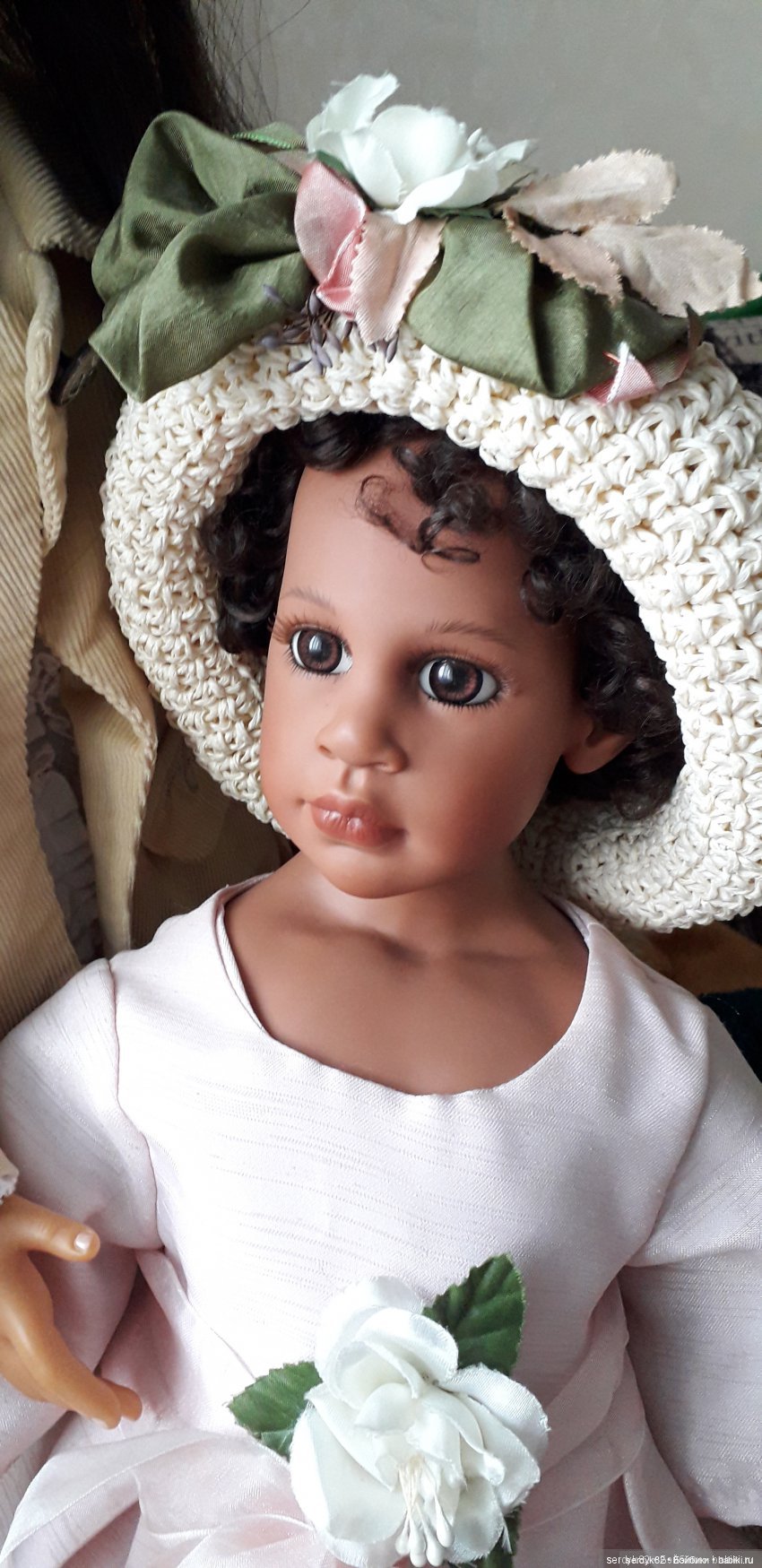 Немного истории, как куклы выбирают свой дом. В доме где жила Сью они были с другой куклой. Потом их продали и Сью приехала ко мне, а вторая девочка всё продавалась, всем вроде нравилась и никто не покупал долго. И тут мне предложили сет из кукол, и я подумав, согласилась. И там была эта кукла, подруга Сью. Так и едет ко мне теперь. Едут они из Сербии.