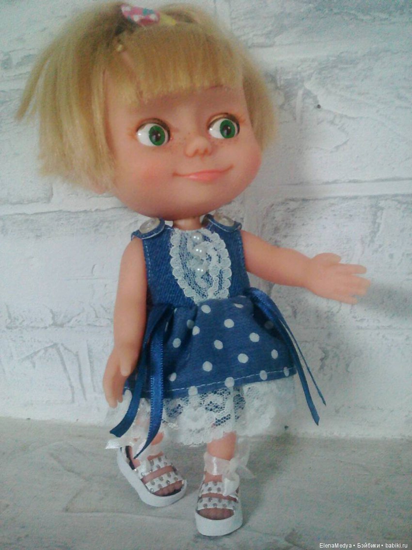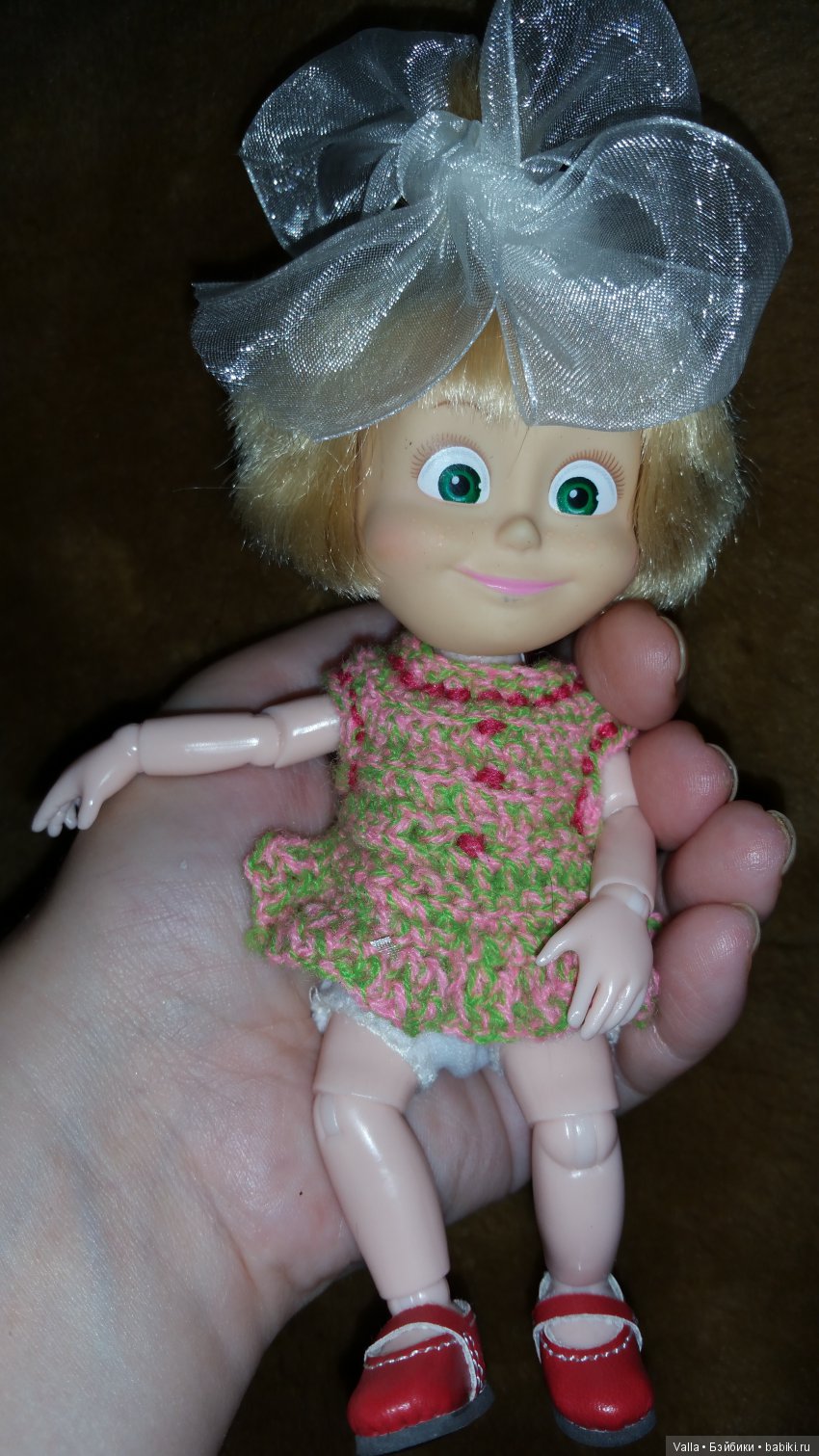Вот моя Маша, правда платье на оригинальное тело еще вязала и оно маловато. Нужно по размеру будет ей связать платье.