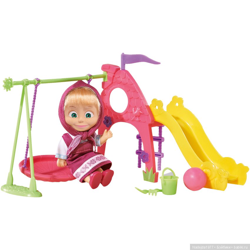 Что-то самая главная Маша не очень счастливой выглядит. Наверное, устала выбирать между Машкой, Машкой и Машкой? Или обиделась, что с качелями не досталась? Я бы тоже обиделась. С качелями — веселье через край :)))