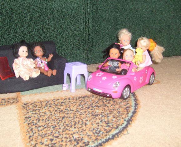 девчонки решили покататься на новой машинке, ведь раньше они могли о ней только мечтать, а сейчас у них ноавя подружка и машинка!!!