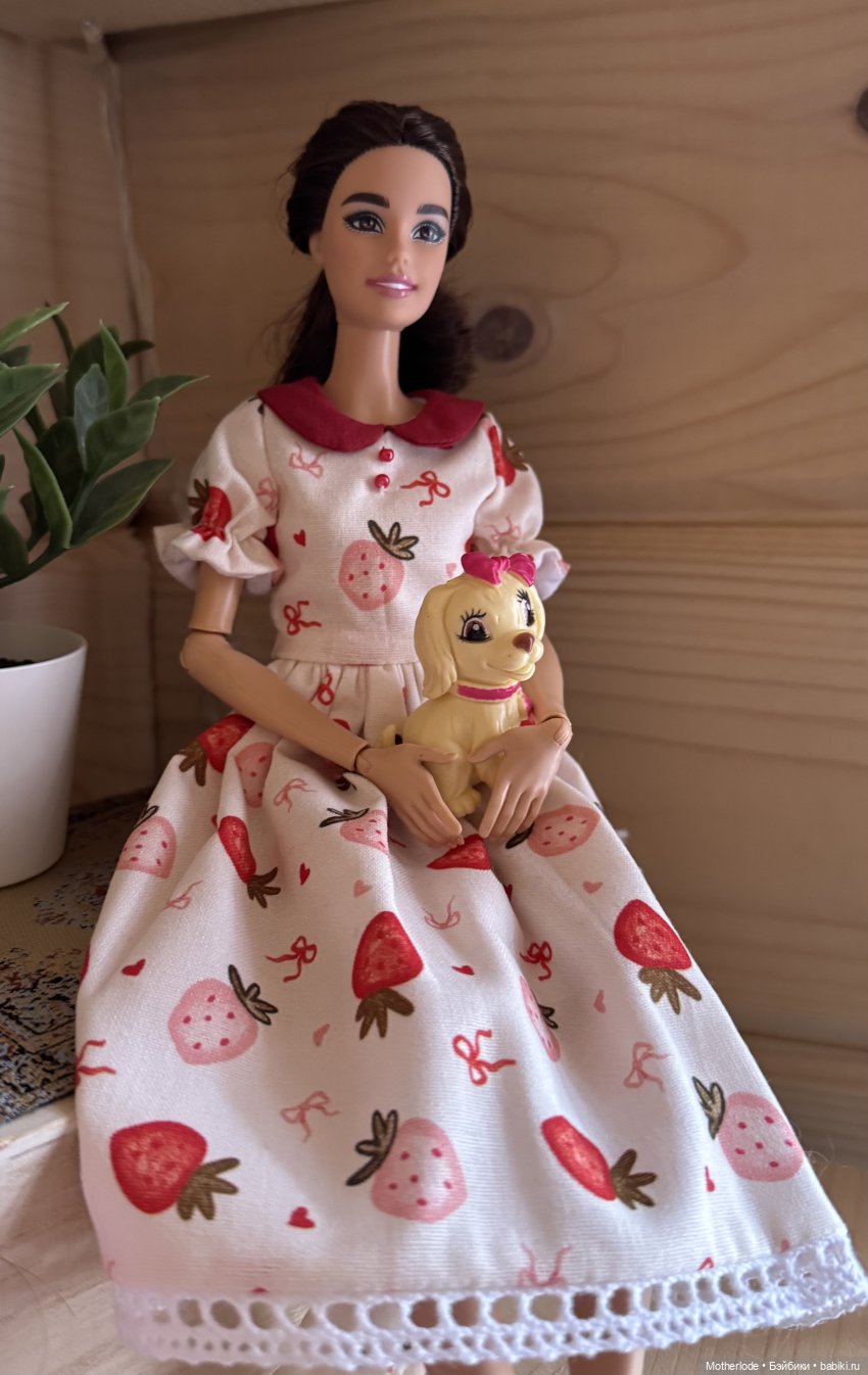 а собачка ещё и достаточно большая, чтобы и с более крупной куклой — старшей сестрой или мамой — вписаться)))