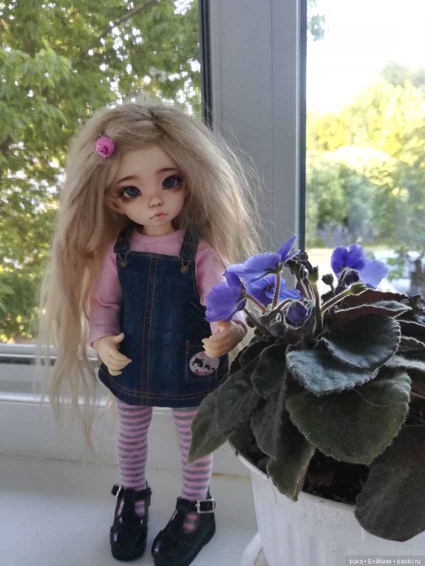 А тем временем от замечательной мастерицы Ольги OLgaLisenoK ехал костюмчик с джинсовым сарафаном. О джинсовой вещи в гардеробе Натки я давно мечтала, и вот мечта исполнилась! Тем более, что и погода порадовала похолоданием. Переодела Натку в костюмчик, заодно решили немножко поменять образ, побыть брюнеткой :)