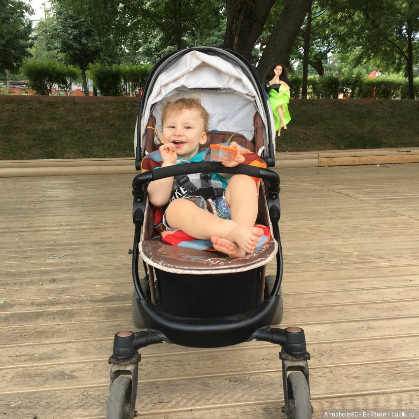 А младшего пристегнули к коляске на время фотосессии, потому что он бежит прямой наводкой в пруд