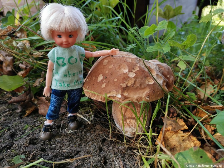 Летних фото у меня миллион… это из последнего, прямо у домика на даче вырос белый гриб! Ромка у меня иногда за гномика)