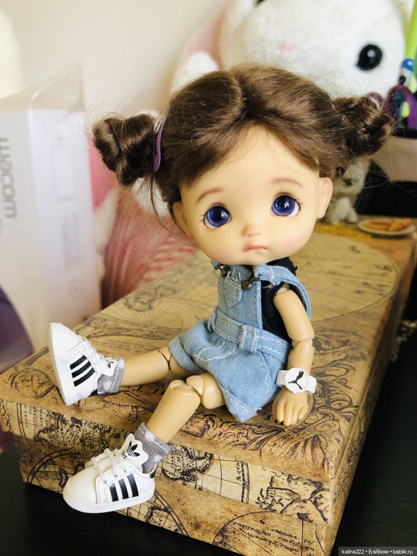 Я на этом сайте уже почти 9 лет и начинала свою коллекцию с кукол от Моники Левениг. Они и сейчас занимают половину большой комнаты в квартире. Но время идёт, все меняется и мне тоже захотелось попробовать что то ещё, а главное мне хотелось иметь мобильную куколку-компаньона. Посмотрев ценовую политику кукол, я остановила свой выбор на пукифи Анте и открыла охоту на неё в Шопике. Но поймала я Ванильку! Как же мне нравился маленький, ушастенький, нежный ангелочек, с большими бездонными голубыми глазами. С компаньоном как то не получилось, очень боялась испортить ей мейк, сломать, потерять, но зато поняла, что размер очень комфортный для меня. Некоторое время она была у меня одна, а потом приехала Никушка от Никки Бритт и Люсенька от Татьяны Филенко. Все, решила я для себя, для поиграть мне кукол хватит.