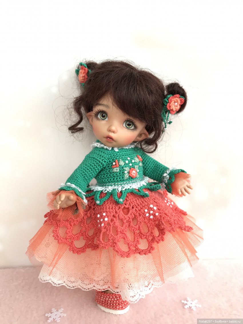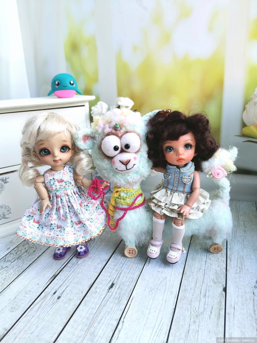 Доброго времени суток! В мае мне удалось совсем не дорого, купить «старенькую»пукифи Зои. В об’явлении было написано, что мейк на личике поврежден и лицевая панель не плотно прилегает к голове. Но мне нужно было тело, так как у меня уже имелась лицевая панелька с красивым мейком Зои. По приезду стало понятно, что тело имеет желтоватый оттенок, а личико розовое. Разница в тоне сильно бросалась в глаза, да и эта панель тоже не прилегала плотно к голове. Я расстроилась, все сложила в одну коробку и убрала в шкаф. И вот через месяц я увидела в шопике лицевую панельку пукифи Анте. И цвет у панельки желтоватый и мейк очень подходящий. Решила купить, хотя честно говоря не планировала оставлять себе Анте. У меня уже есть любимая пукифи Ванилька, а они чем то похожи с Анте. Но решила, что куплю, а потом предложу знакомой, которая хочет Антешку, либо выставлю в Шопик. И вот вчера я забрала панельку с почты, раскрыла, решила собрать личико из того, что было под рукой. Глазки взяла у «старенькой»Зои, парик нашёлся только с коротенькими, синтетическими, жёсткими волосиками. Зато тело совпало по цвету и лицевая панель подошла к телу просто идеально. Одели колготочки, платьице, туфельки и вот на меня уже смотрит маленькая, живая девочка и я понимаю, что никому ее не продам, что это любовь с первого взгляда! Сегодня решили сделать чуть-чуть фото и познакомить ее с Ванилькой и Сосо. Ребёнок назвался Анюткой.