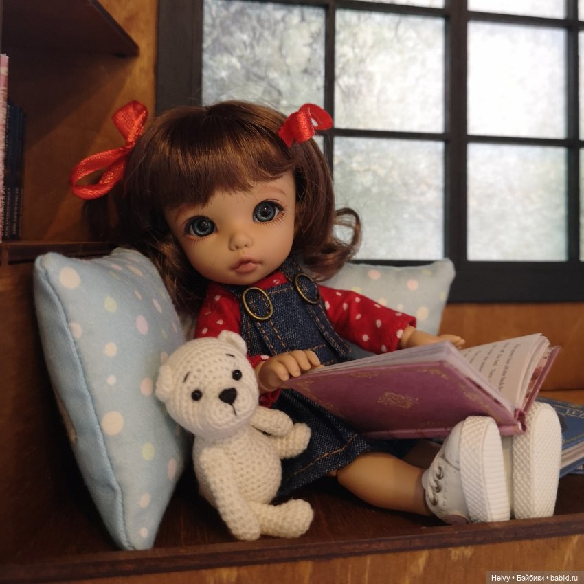 У моих кукол много интересных книжек. Антешка часто читает сказки, а мишка ей помогает.