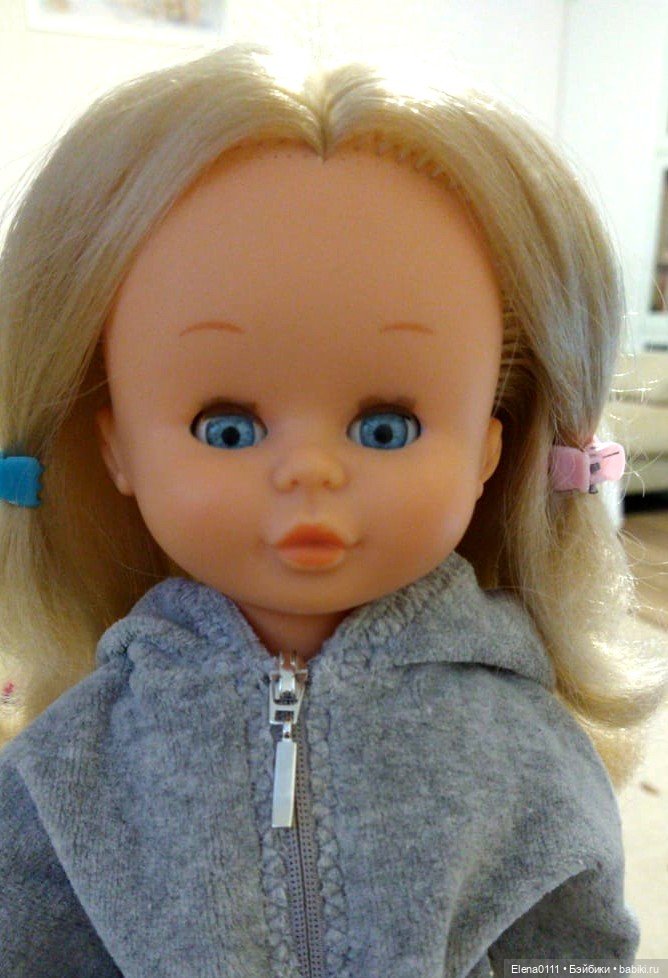 Моя Нэнси классическая: голова и ручки резина, тело и ноги пластик( полиэтилен). Ко мне приехала она уже весьма заигранной с треснутыми дисками ног и трещиной в теле. Поэтому для активных примерок жалко её использовать и я стала задумываться о реплике, которых официально выпускает фабрика. А ещё на глаза стали попадаться фото похожих кукол под именем Кика и недорогих, что тоже важно. В отличии от настоящей Нэнси, они полностью виниловые. Закралась шальная мысль купить Кику и примерить её тело с ногами моей Нэнси… Или использовать как манекен. Долго я высматривала их в нашем шопике. Наконец на глаза попалась та самая :) По приезду стало понятно, что она значительно меньше Нэнси и весьма мне понравилась. То есть при совпадении в росте разобрать её я бы не решилась)))