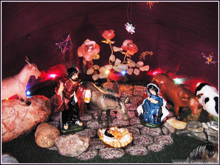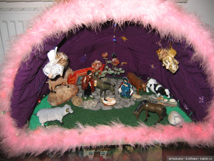 И фигурки животных, и младенца Иисуса, и Марию с Иосифом, даже огонечки сделала! )) Очень здорово, молодец!